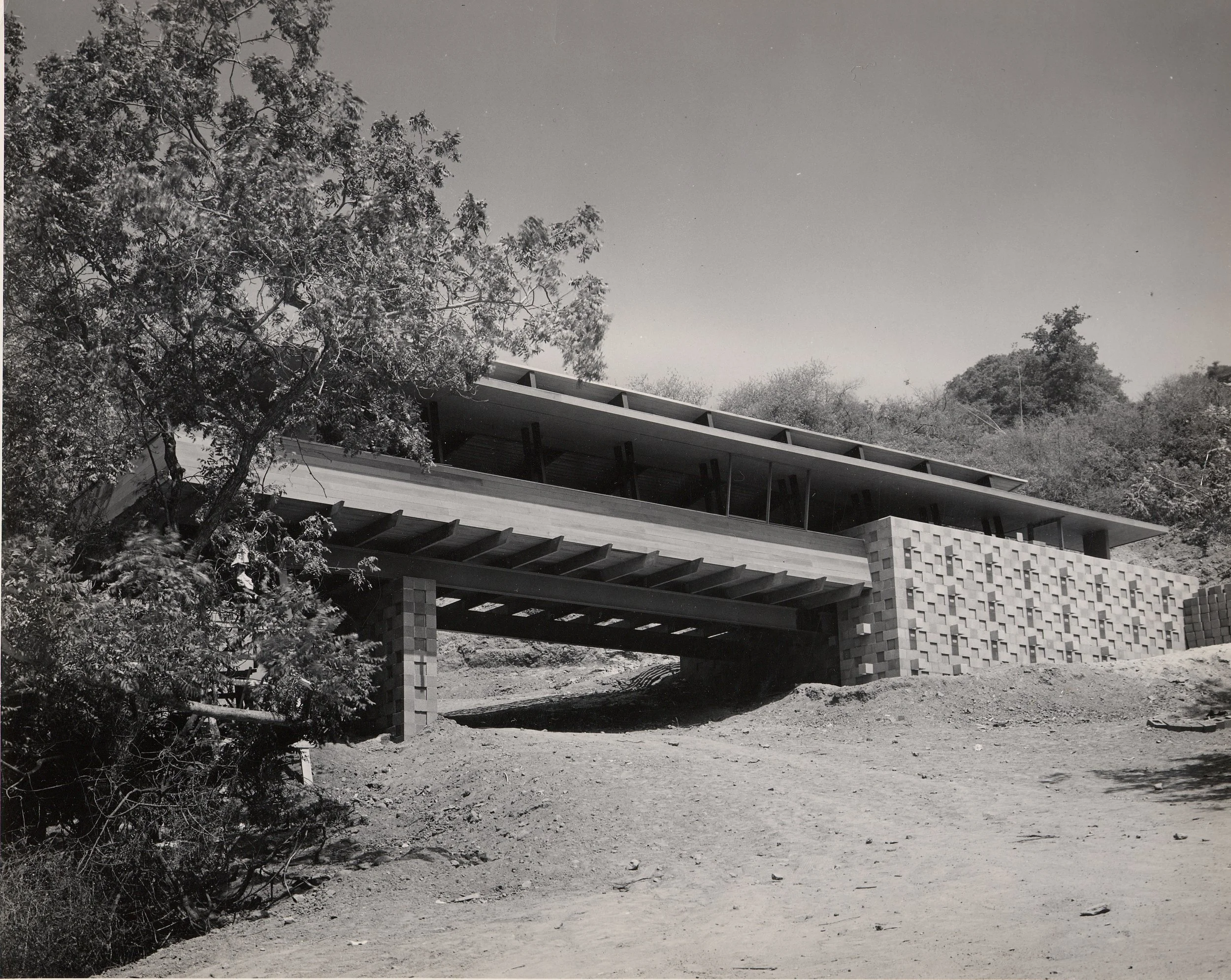 In the aftermath of World War II, four returning veterans—studio musicians seeking a new way of living—purchased land in the Santa Monica Mountains and founded the Mutual Housing Association (MHA). Their vision of shared resources and modernist design grew into Los Angeles’s first large-scale cooperative housing development, planned across 800 acres with homes, communal facilities, and a neighborhood infrastructure. Architects A. Quincy Jones, Whitney R. Smith, and Edgardo Contini created nine core designs featuring dramatic rooflines, natural materials, and glass walls that dissolved the boundary between indoors and out. Eventually 80 houses were built, including contributions by Richard Neutra, Craig Ellwood, Rodney Walker, and Ray Kappe.
