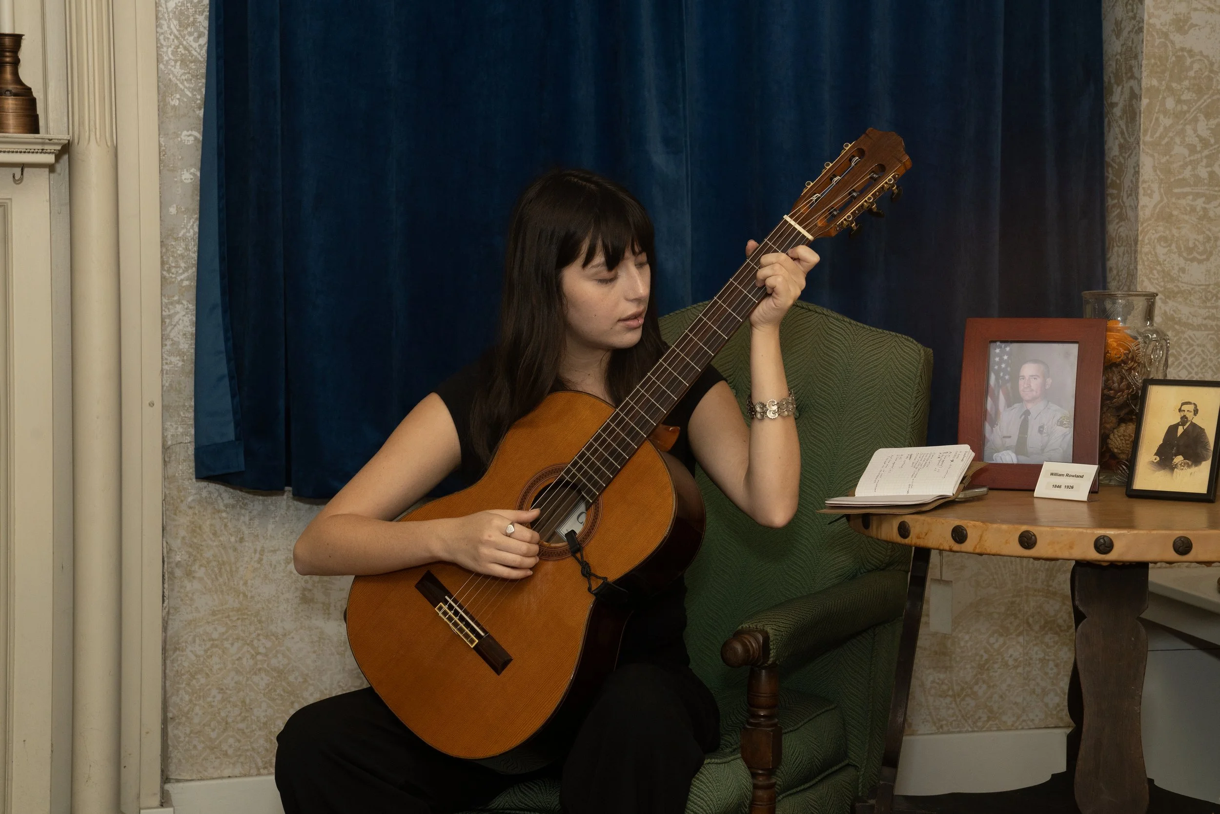 Victoria Marks’ Las Cosiendas is a research-driven movement work that animates and unsettles the Rowland Mansion’s histories. Named for La Cosienda Club, where women gathered to sew and socialize between 1914 and 1964 in La Puente, the performance draws from archival photographs and the oral histories of members of the La Puente Women’s Club whose matrilineal lineages weave together Kizh, Spanish, Mexican, and Californian histories. Working closely with several club members, Marks creates “choreo-portraits” that unfold throughout the mansion’s first floor, challenging traditional portraiture and complicating settler legacies. In her choreography, sewing becomes a metaphor for mending, repairing, and connecting across generations, while music functions as both a score and a vessel for remembrance, carrying ancestral names into the present. The performers replace the lyrics of the traditional song La Bruja with a litany of their mothers’, grandmothers’, and great-grandmothers’ names, accompanied by a live adaptation. This act of vocal testimony transforms the performance into a living archive, foregrounding the Indigenous and women’s labor that are often left out of official narratives, and acknowledging their essential role in sustaining the mansion and its histories.